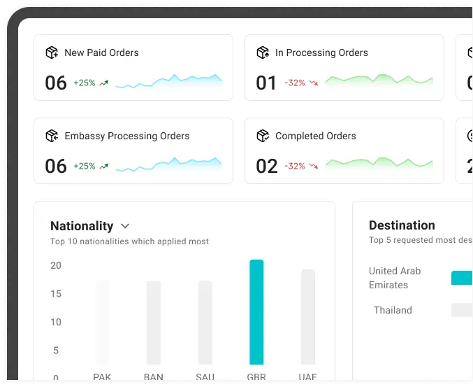 Real-time tracking: Your customers see their visa status instantly. Fewer "where's my visa?" calls.